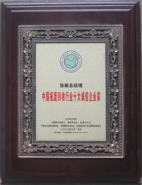 阜陽市華成再生資源綜合利用有限公司是安徽省物資再生協(xié)會(huì)副會(huì)長單位, 安徽省再生資源行業(yè)先進(jìn)單位, 安徽省青年文明號(hào)、安徽省創(chuàng)業(yè)帶頭人先進(jìn)單位,阜陽市“十二五重點(diǎn)培育企業(yè)”。