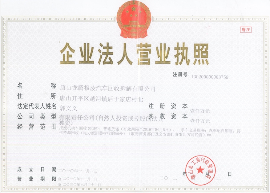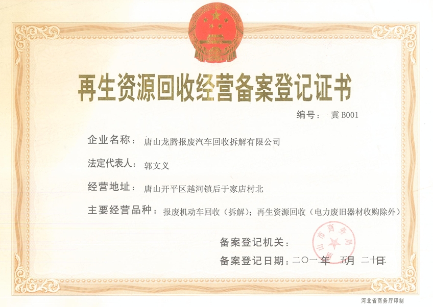iDU全國車輛報廢解體辦理中心|車輛報廢解體|車輛補貼|車輛回收|車輛注銷 iDU全國車輛報廢解體辦理中心|車輛報廢解體|車輛補貼|車輛回收|車輛注銷iDU全國車輛報廢解體辦理中心|車輛報廢解體|車輛補貼|車輛回收|車輛注銷 唐山龍騰報廢汽車回收拆解有限公司隸屬于唐山市冀東物貿(mào)集團有限責任公司,由唐山市冀東物貿(mào)集團有限責任公司出資,按照國家節(jié)能減排的要求,大力促進再生資源利用,經(jīng)唐山市人民政府批準,并報河北省商務廳核準,由唐山市開平區(qū)發(fā)改局立項備案,具有一定公共性的項目。