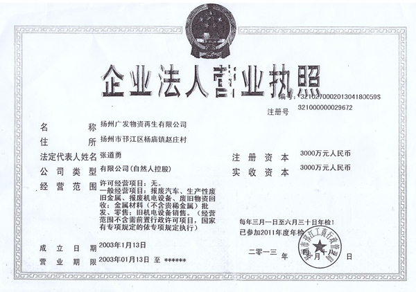 揚州市廣發(fā)物資再生有限公司
