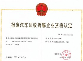 P56全國車輛報廢解體辦理中心|車輛報廢解體|車輛補(bǔ)貼|車輛回收|車輛注銷P56全國車輛報廢解體辦理中心|車輛報廢解體|車輛補(bǔ)貼|車輛回收|車輛注銷江西遠(yuǎn)鑫資源循環(huán)投資開發(fā)有限公司獲得信用評價3A企業(yè)稱號、2017年高薪技術(shù)企業(yè)認(rèn)定、中國再生資源回收利用協(xié)會常務(wù)理事單位并獲得2017年優(yōu)質(zhì)會員企業(yè)榮譽(yù)、江西省再生資源回收利用協(xié)會第三屆理事會常務(wù)理事、中國環(huán)境保護(hù)產(chǎn)業(yè)協(xié)會會員單位、江西省環(huán)境保護(hù)產(chǎn)業(yè)協(xié)會會員、江西省再生資源回收利用協(xié)會會員、“新四板”掛牌企業(yè)、掛牌代碼(162314),擁有8個軟著,2項發(fā)明專利,2項實用型新型專利,多項專利正在申請中、有獨立的科研能力、以及較強(qiáng)的贏利能力。