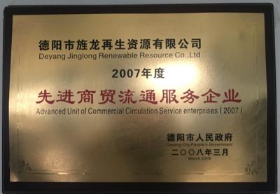 德陽市旌龍再生資源有限公司截止目前為止,德陽市旌龍再生資源有限公司未出現(xiàn)過報廢汽車違法現(xiàn)象,公司連年被德陽市人民政府授予商貿(mào)流通先進企業(yè),公司黨支部多次被上級黨委評為先進基層黨組織。